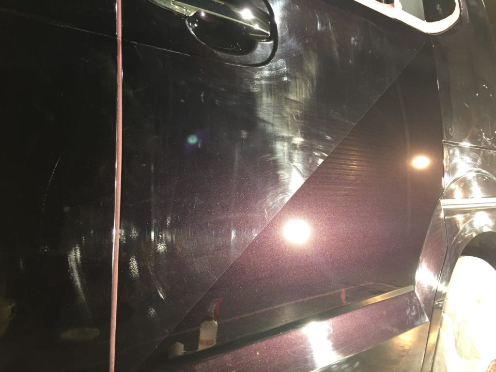 ポリッシャーで1パネル毎にMPSを塗り込んで行きます。3~40cm四方を1単位目安として施工します。