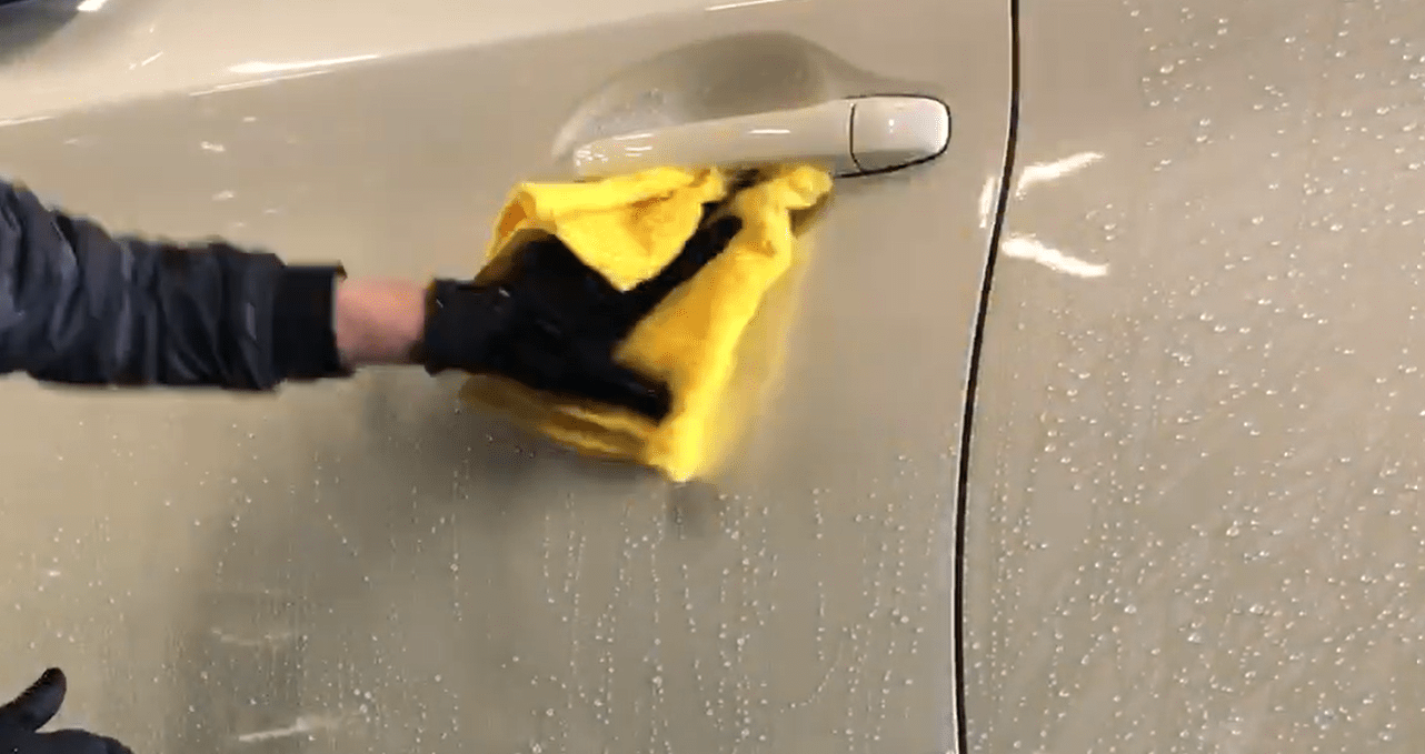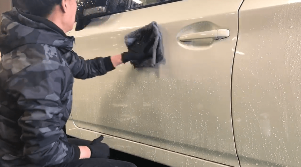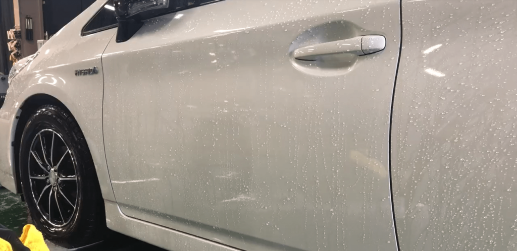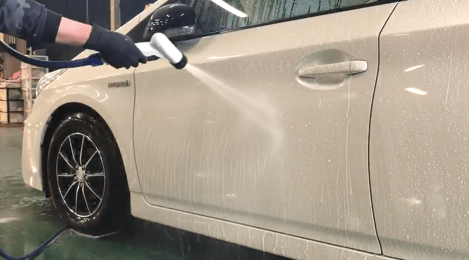 塗り込みが完了したら、ホースをジェット状態(シャワーやホースの先を細める)にして、強めの流水で水圧を与えます。