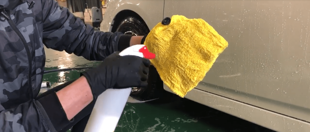 水で濡らし、固絞りしたクロスにZD or XDを吹きかけてください。