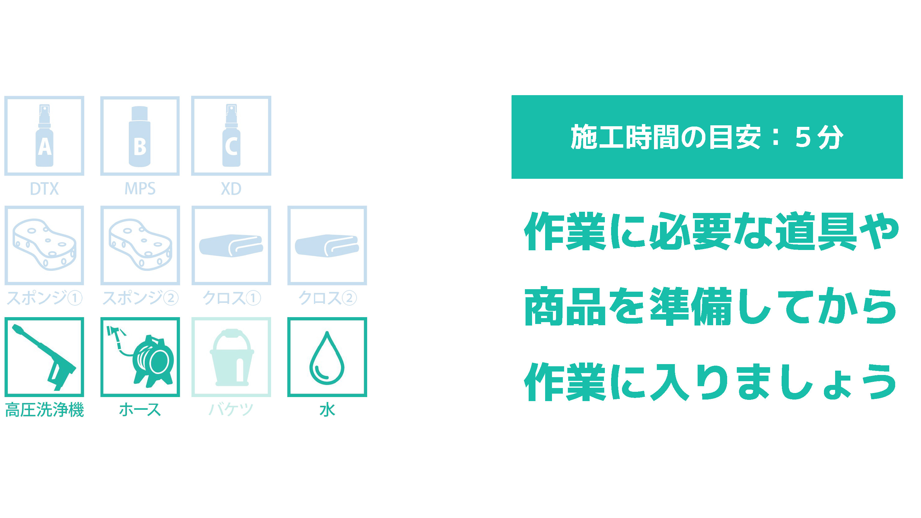 高圧洗浄機を使用したり、ホースの水流をジェットなど強めにして、作業を行ってください。