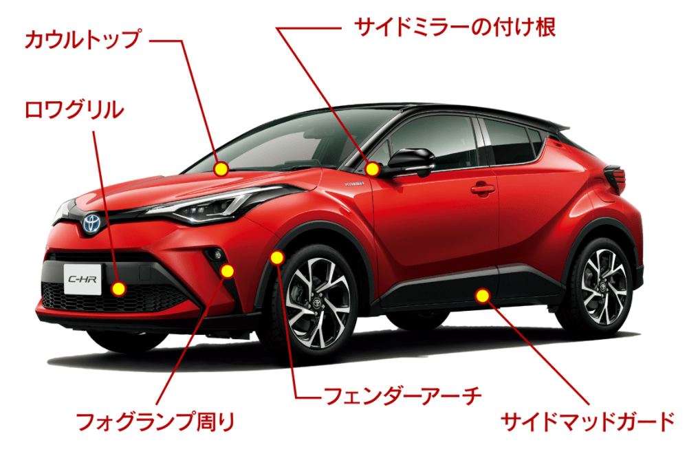 ※車種によっては「未塗装樹脂パーツ」ではない場合や以下で指した場所以外が「未塗装樹脂パーツ」の場合もございます。