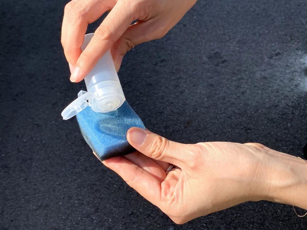 また、使用する塗り込み用のスポンジ、拭き取り用のクロスが乾いていることを確認してください。