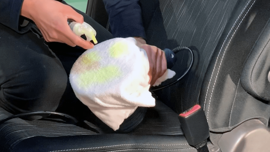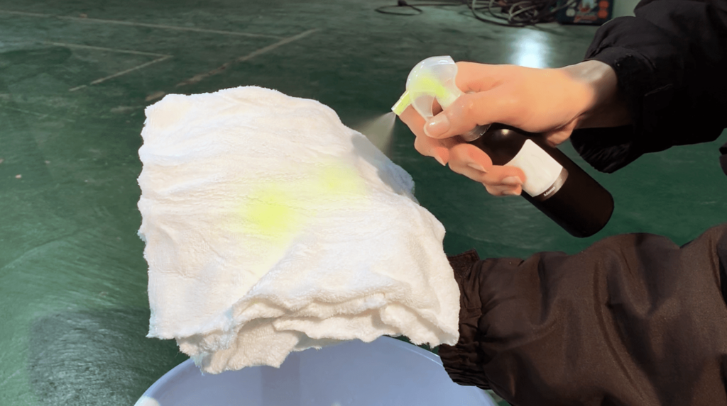 MRC Plusをタオル面に適量(4カ所)散布します。