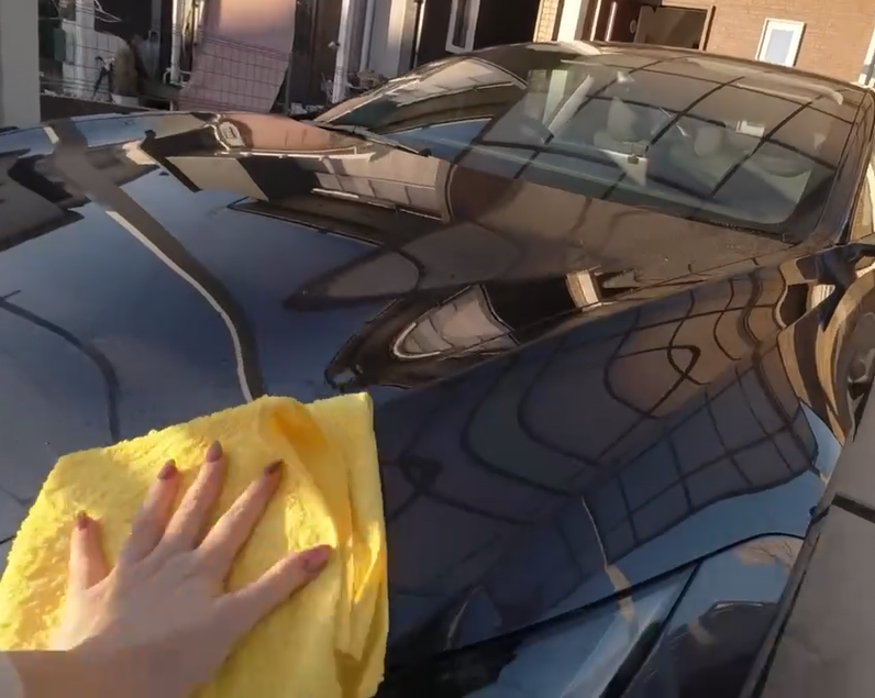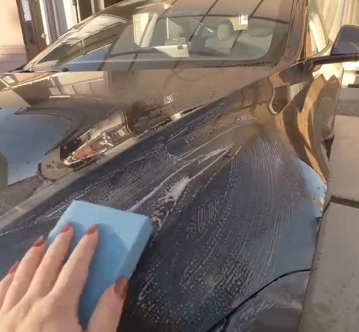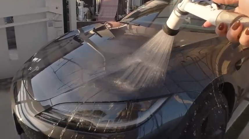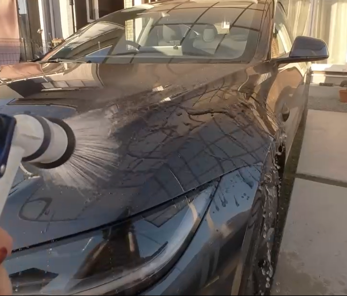 ※通常は洗浄中に液剤が乾いても問題ありませんが塗装状態の悪い高年式車は乾く前に部分的に水で流してください
