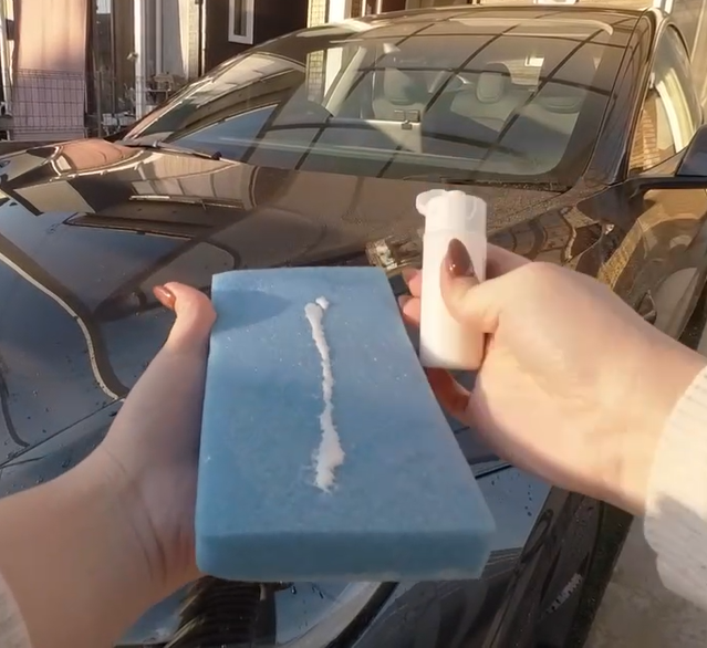 塗布したスポンジをボンネット半分程度を目安に塗り込みます。