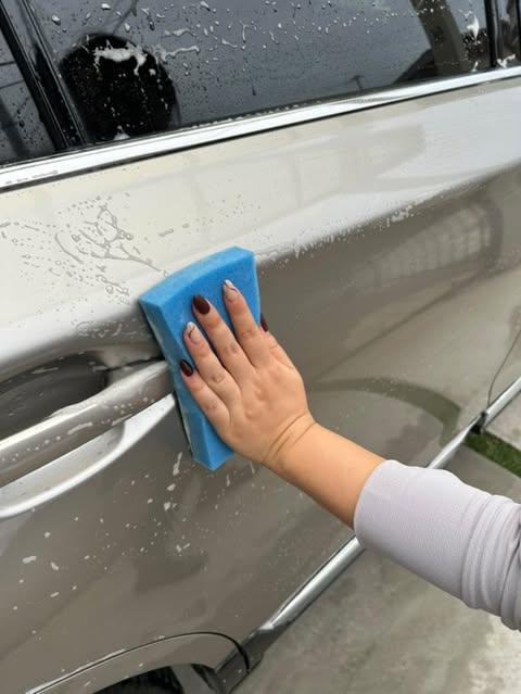塗装面に水をかけ、傷の原因となるホコリや砂利を落としてください