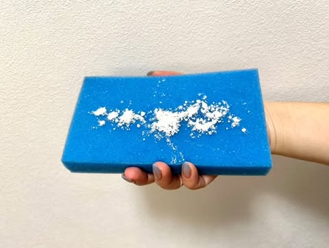 スポンジにたっぷり水を含ませ、CPWを適量ふりかける(スポンジ全面に薄く粉がのるように)