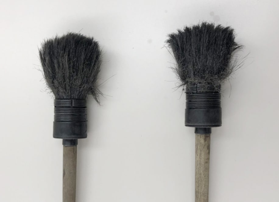 基礎知識 ディティーリングブラシ この記事のタイトルとURLをコピーする 先端にキズ対策の加工を施した樹脂製ブラシです。程よい毛の長さとしなりが、狭い隙間や手では届きにくい場所の汚れをかき出します。 外装だけではなく、ルームクリーニング時にも大活躍なブラシです。 【保管方法】使用後は、優しくもみほぐすようにして洗い、シャンプーや溶剤をしっかり落としましょう。毛先が広がりやすいので、毛先をしぼり、形を整えて乾かしてください。吊るして乾かすことをおススメ致します。※右の画像のように、毛が折れてしまい水につけても形が戻らない場合は、交換のタイミングです。 基礎知識 ALC, ディティーリングブラシ, ブラシ, 商品詳細